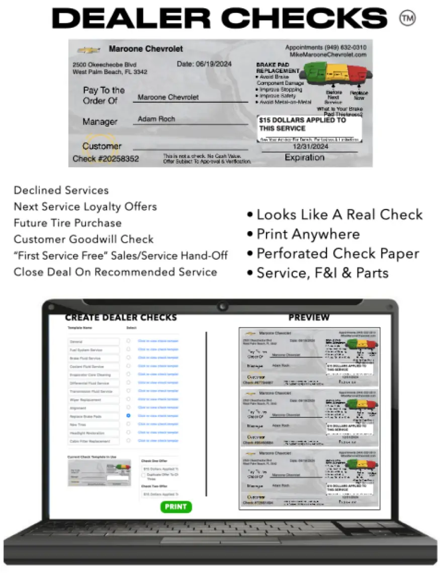 Dealer Checks. Onsite Cross Selling Checks. Print On Demand Promotional Checks & Share With Customers